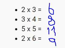 Apesar de, em geral, interpretar as frases da forma mais literal possível, dessa vez não me atentei ao símbolo de “vezes” ser também a palavra vezes. Mas eu sabia, por ter ouvido várias vezes, que 2 x 3 é igual a 6.