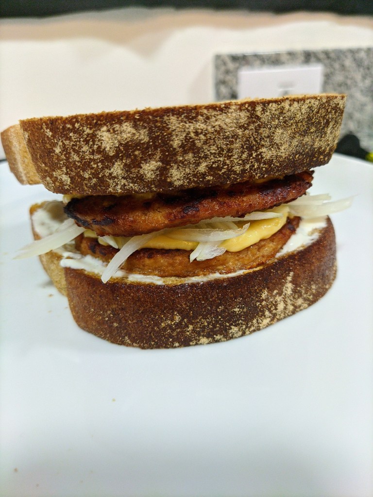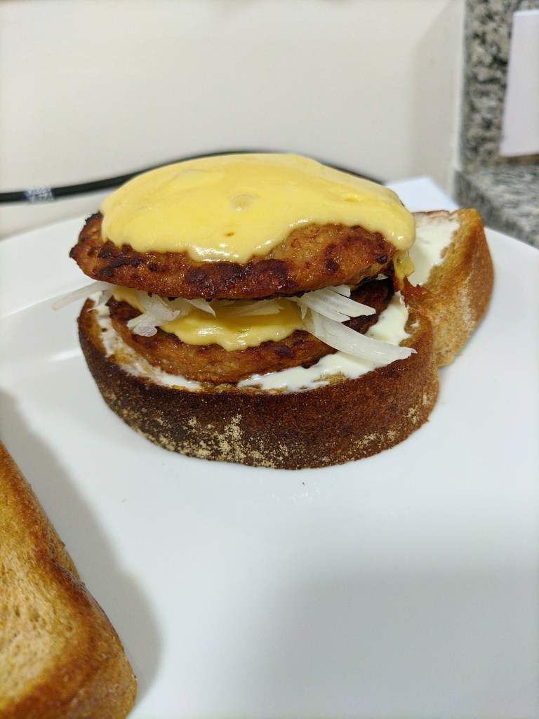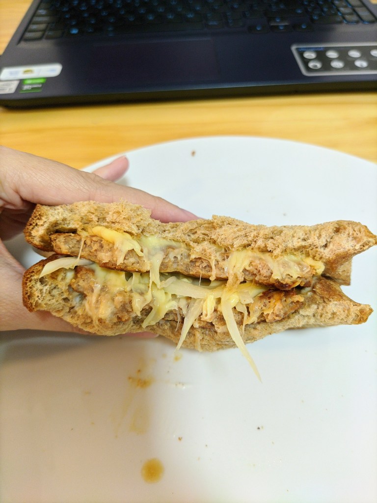 Meu saldo de calorias permitiu, então resolvi fazer este delicioso sanduíche. Depois de comer fiquei me indagando como era possível eu cozinhar tão bem assim sem nem ter bebido um vinho antes, quantas estrelas michelin essa cozinha merece, por que acabou tão rápido, quem é a deusa da culinária.