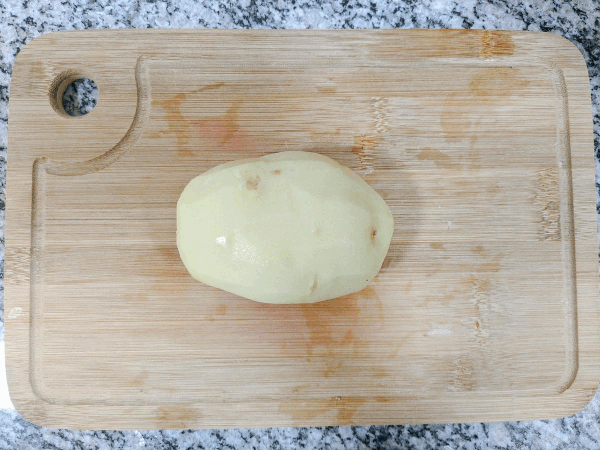 Agora vamos começar a usar a faca, nisso o vinho já está aberto e servido, tome um gole, cuidado com as mãos, descasque a batata, não é um diamante, não precisa ser lapidado até ficar com uma fração do tamanho original, tire apenas a casca, ou esse purê não vai render, corte em pequenos pedaços, como ensinava o Grimble: