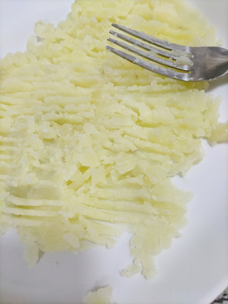 Pré-aqueça a airfryer por cinco minutos. Eu vou fazer essa tilápia na airfryer mesmo, não sou um australopithecus, quer maior praticidade, agora retire as batatas e as amasse com um garfo, ou com um amassador de batatas, se estiver cozinhando para uma escola ou uma igreja pentecostal, caso contrário não há motivo para ter um amassador de batatas em casa, por deus, não precisa amassar muito, esse purê é rústico.