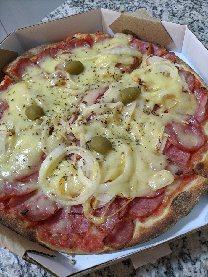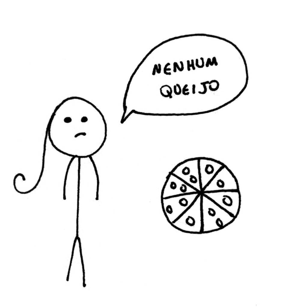 Não tinha semanas que morava aqui quando fiz o pedido, fui receber toda feliz, empolgada, mas como é possível, esqueceram o principal ingrediente de qualquer pizza, é isso mesmo?, não tem queijo.