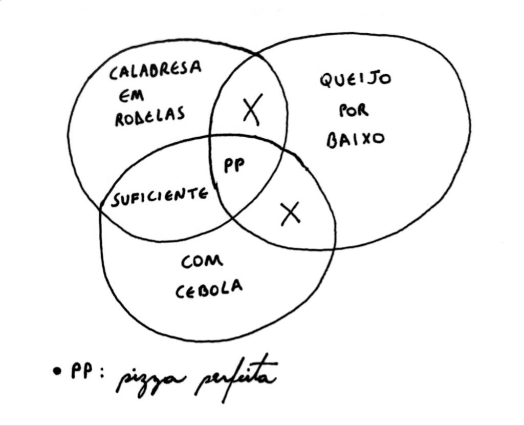 Voltando à terrível pizza sem queijo, na ocasião, naturalmente compartilhei minha desventura, indignada, com meus colegas, ouvi em uníssono: ah, mas você deveria ter pedido toscana, como assim, toscana, quem teria uma ideia tão malévola de fabricar um sabor de pizza sem queijo, já é um milagre o motoboy chegar com a cebola e as rodelas dentro da massa, devido à ausência de cola, que no caso seria precisamente o queijo, e aí aprendi a primeira e maior lição de como me comportar em São Paulo, mas agora vem o segundo problema, toscana nem sempre é a mesma coisa que calabresa + queijo, não senhor: