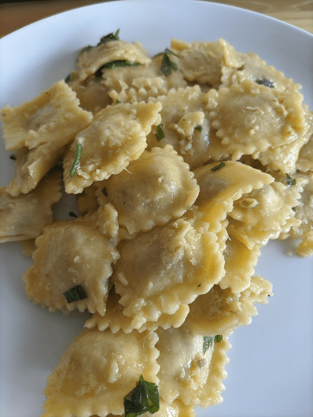Eu adoro o ciclo da melhoria contínua, acho uma delícia ver como a gente vai descobrindo caminhos novos e mais eficientes para chegar ao mesmo resultado, ou a um resultado melhor ainda. Isso acontece quando você faz a mesma receita de novo e de novo, foi o caso do ravioli, antes eu passava um tempão ralando alho e gengibre, agora já uso o triturador manual pra fazer um trabalho bem mais rápido. Também passei de sem shoyu para shoyu no pratinho para shoyu direto na massa.