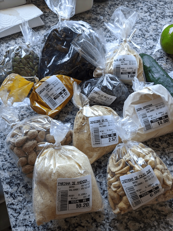 O caldo é o mesmo de ontem, a salada temperei com muito limão, erro de principiante, depois comi 30g de castanha de caju, e o arrependimento por ter comprado a versão sem sal bateu.